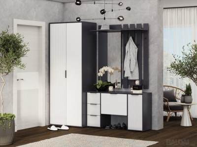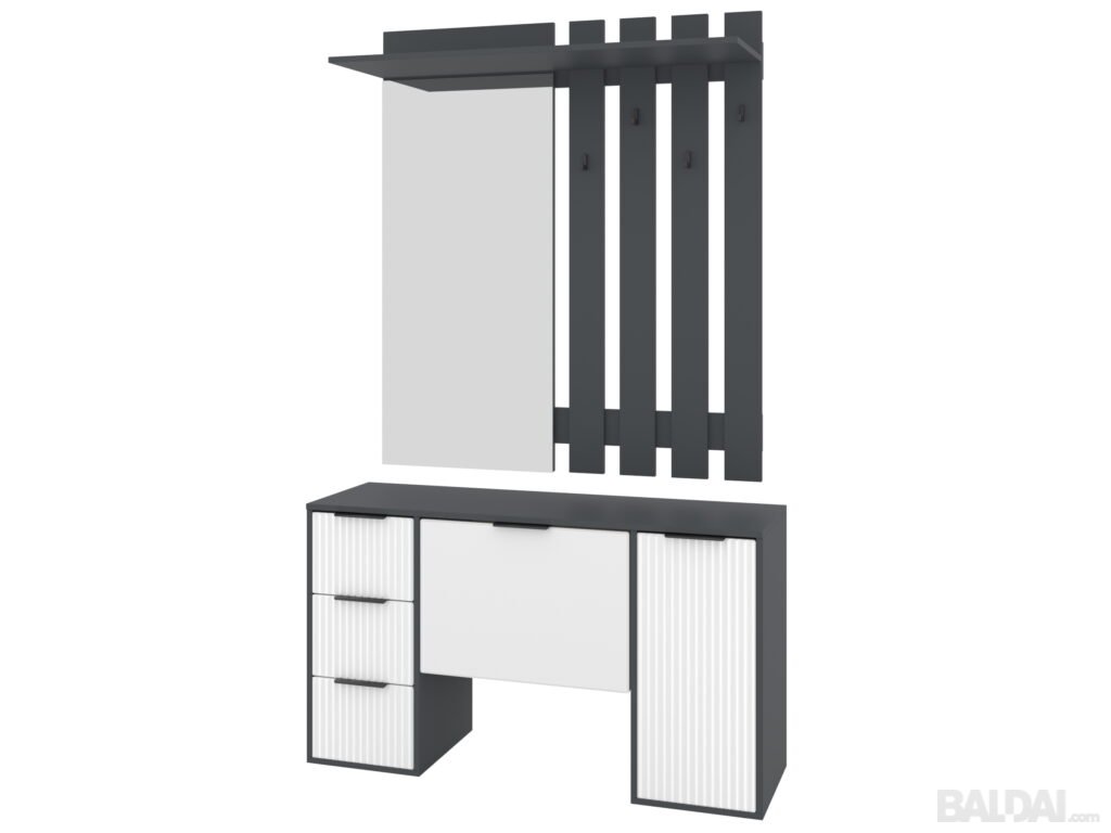 Turi didelį veidrodį, pakabą su tvirtais kabliukais viršutiniams drabužiams, taip pat patogią spintelę su stalčiais ir skyrių batams.