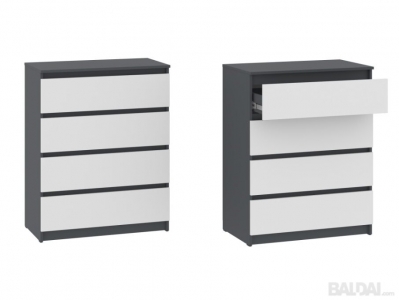 Komodos konstrukcijoje yra keturi ištraukiami stalčiai ant patvarių teleskopinių bėgelių, kurie užtikrina tylų ir sklandų atidarymą.